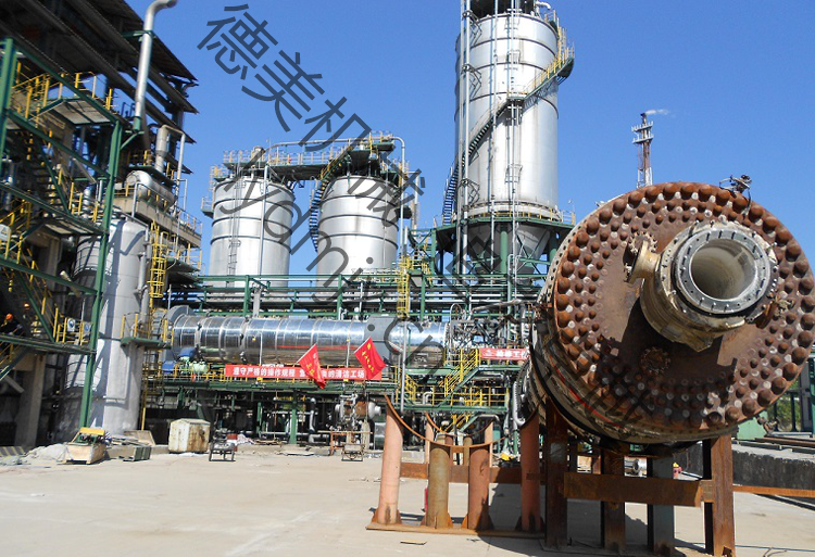 洛陽石化PTA裝置現場機臺上安裝國產化干燥機(下邊為拆除日本產舊干燥機)